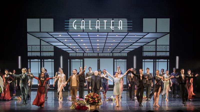 В новой постановке он Габышев исполняет роль скульптора — мастера по бальным танцам — знаменитого и богатого. Его Галатея — нескладная девушка, дитя трущоб или простолюдинка. Её исполняет Любовь Андреева.