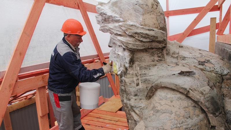 Больше всего трудностей вызвал материал, из которого изготовлены скульптуры — это пудостский камень — известковый туф, который добывается в Ленобласти. Он пористый, словно губка. А ведь каждый аллегорический персонаж — сложнейшее сооружение: к примеру, у Днепра есть и весло, и кувшин, из которого льётся вода — они тоже из камня. В общем, есть чему ломаться.