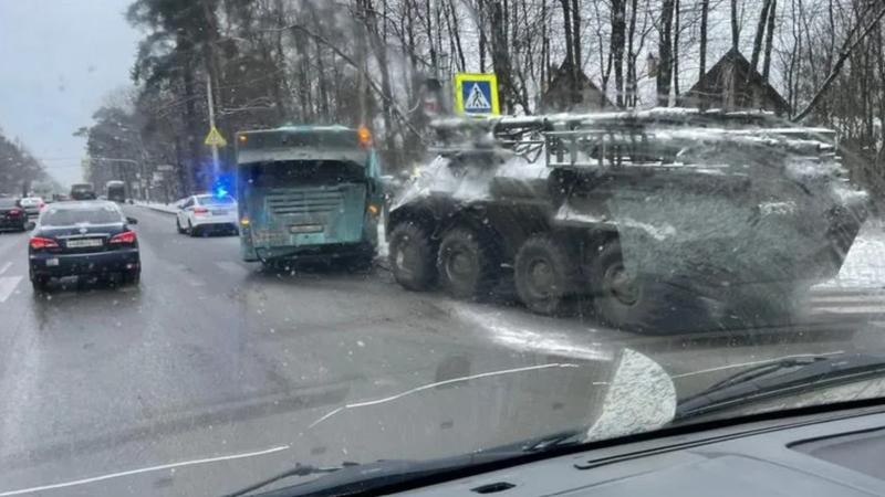 Автобус столкнулся с бронетранспортёром на Выборгском шоссе