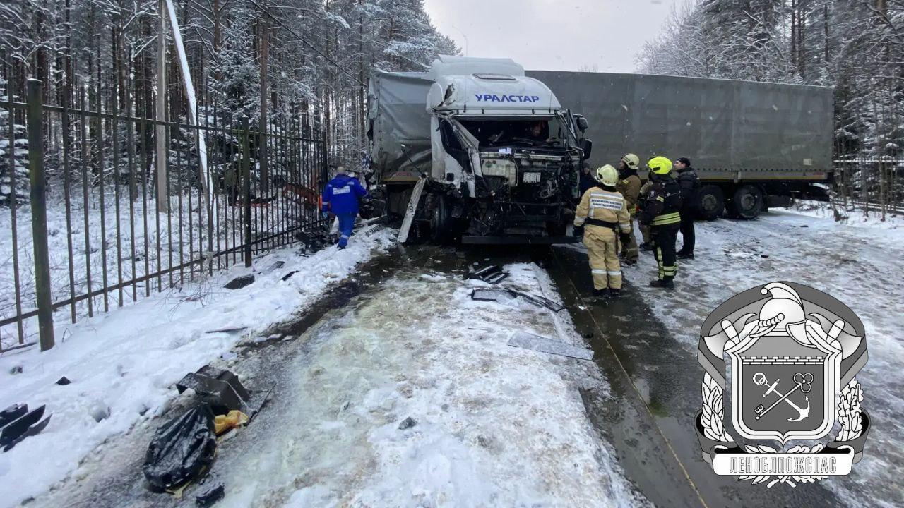 Во Всеволожском районе массовое ДТП с грузовиками, двух человек госпитализировали