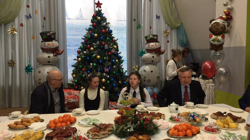 Беглов подарил воспитанникам социального учреждения интерактивную песочницу. А дети порадовали главу города самодельной «ёлкой желаний».