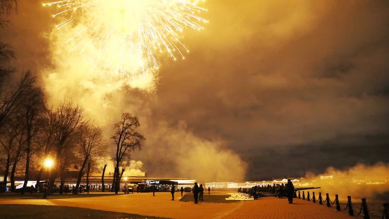 Впервые в истории Петербурга в Московском парке Победы был дан праздничный фейерверк. Его устроили одновременно с артиллерийским салютом у стен Петропавловской крепости, где первый залп из пушки образца 1942-го года дал ветеран Великой Отечественной войны.