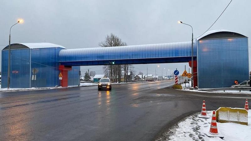 Снесённый грузовиком надземный переход на трассе М-10 в Любани открыли для пешеходов