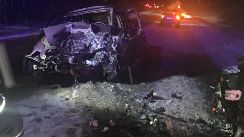В Ленинградской области на трассе А-120 произошло лобовое столкновение двух иномарок.