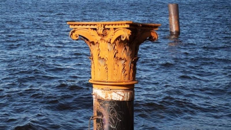 — Бахарев деликатно поместил капитель на трубу, оставив и характерную ржавчину, и нарисованные над уровнем воды граффити. Ближайшая архитектура — сталинские и конструктивистские здания — органично сочетается с колонной, которая напоминает об историческом наследии парадного Петербурга, — поделились создатели.