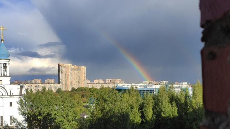 В небе над Петербургом после града заметили красивейшую радугу