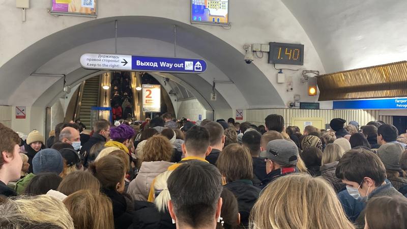 Столпотворение образовалось утром на выходе из «Петроградской» — видео