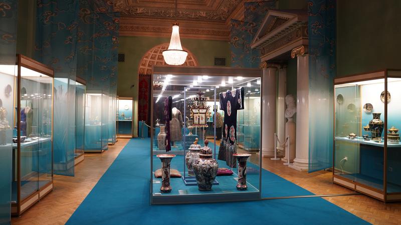 На выставке представлены экспонаты из собрания Эрмитажа, в числе которых вещи из коллекции князей Юсуповых: мебель, оружие, фарфор, стекло, выполненные восточными мастерами или в восточном стиле. Всего экспонируется порядка 130 произведений искусства.