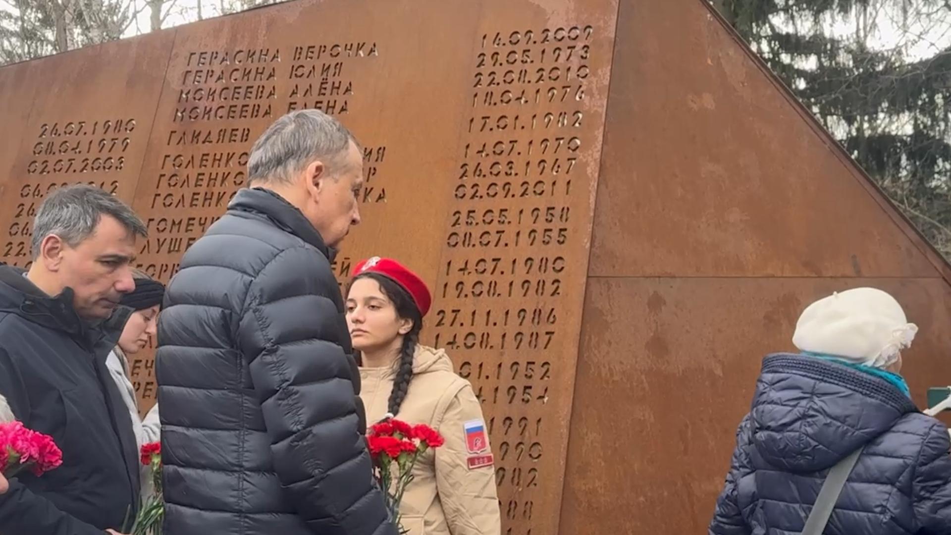 Дрозденко возложил цветы к мемориалу в память о жертвах теракта в «Крокусе» — видео
