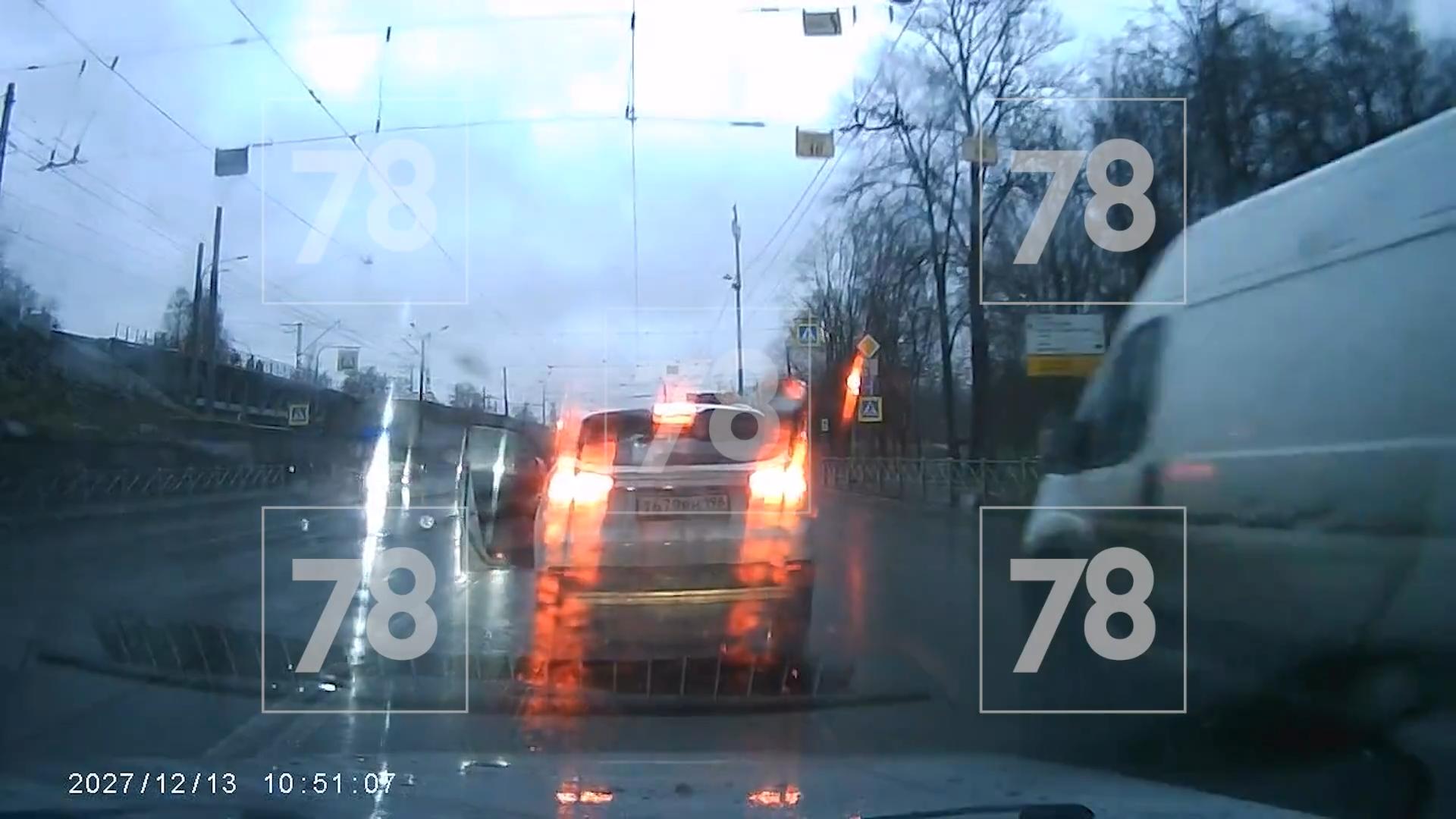 Неадекват выехал на встречку и нанес удары по чужой машине в Петербурге
