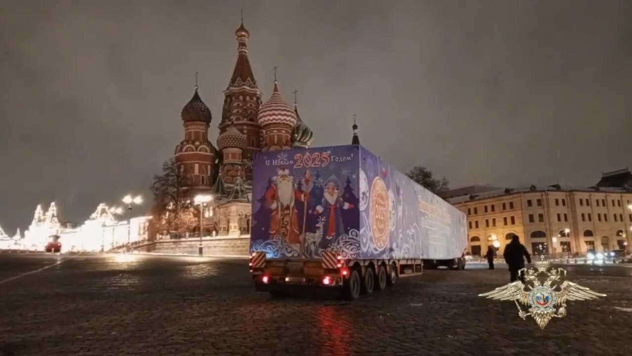 Этой ночью главную новогоднюю ёлку страны доставили на Соборную площадь Московского Кремля. Госавтоинспекция сопровождала специальный автопоезд, на котором ее везли.