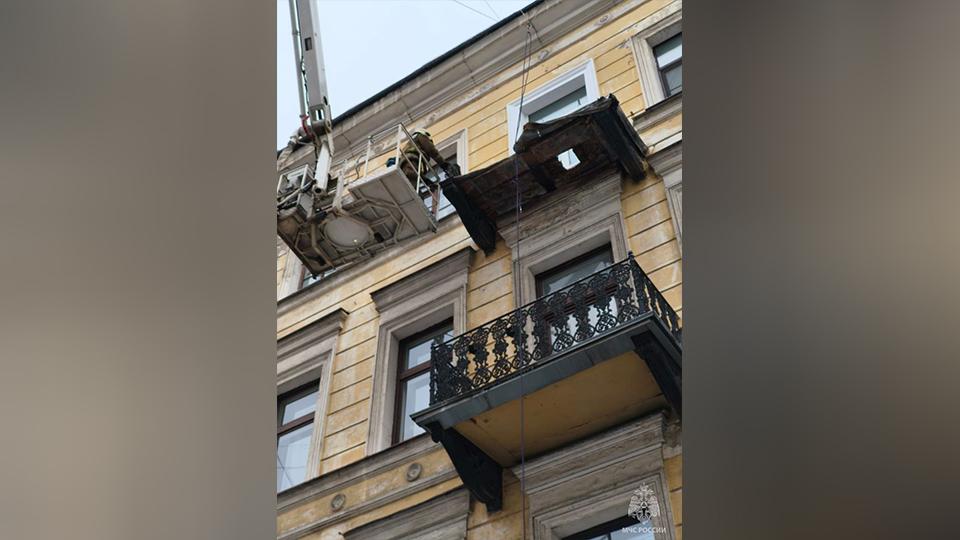 Как рассказали спасатели, недавно пол одного из балконов в доме № 24 на 11-й линии Васильевского острова обрушился. Чтобы избежать жертв в будущем, было решено убрать его вовсе.