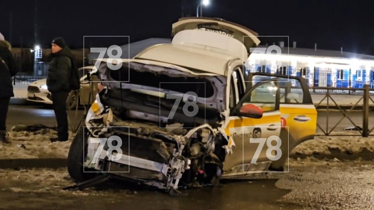 Накануне вечером у дома № 27 на Парашютной улице в Петербурге произошло ДТП с участием такси. Судя по тормозному следу и разрушенному забору, машина на высокой скорости резко свернула, врезалась в ограждение, пробила его и вылетела на встречную полосу. Предположительно, водитель такси не справился с управлением или пытался избежать столкновения с белой иномаркой, которая также находилась на месте аварии.