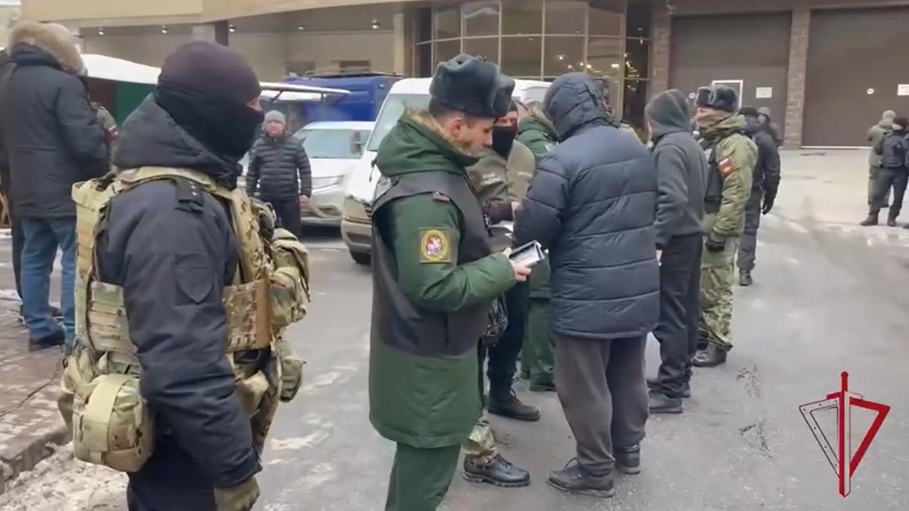 В Петербурге члены ОМОН «Бастион» Росгвардии провели миграционный рейд на Сенном рынке, проверив документы у более чем 100 человек. После этого 22 работников отправили в военкомат для постановки на учет. Об этом сегодня сообщила пресс-служба федеральной службы войск по СЗО.