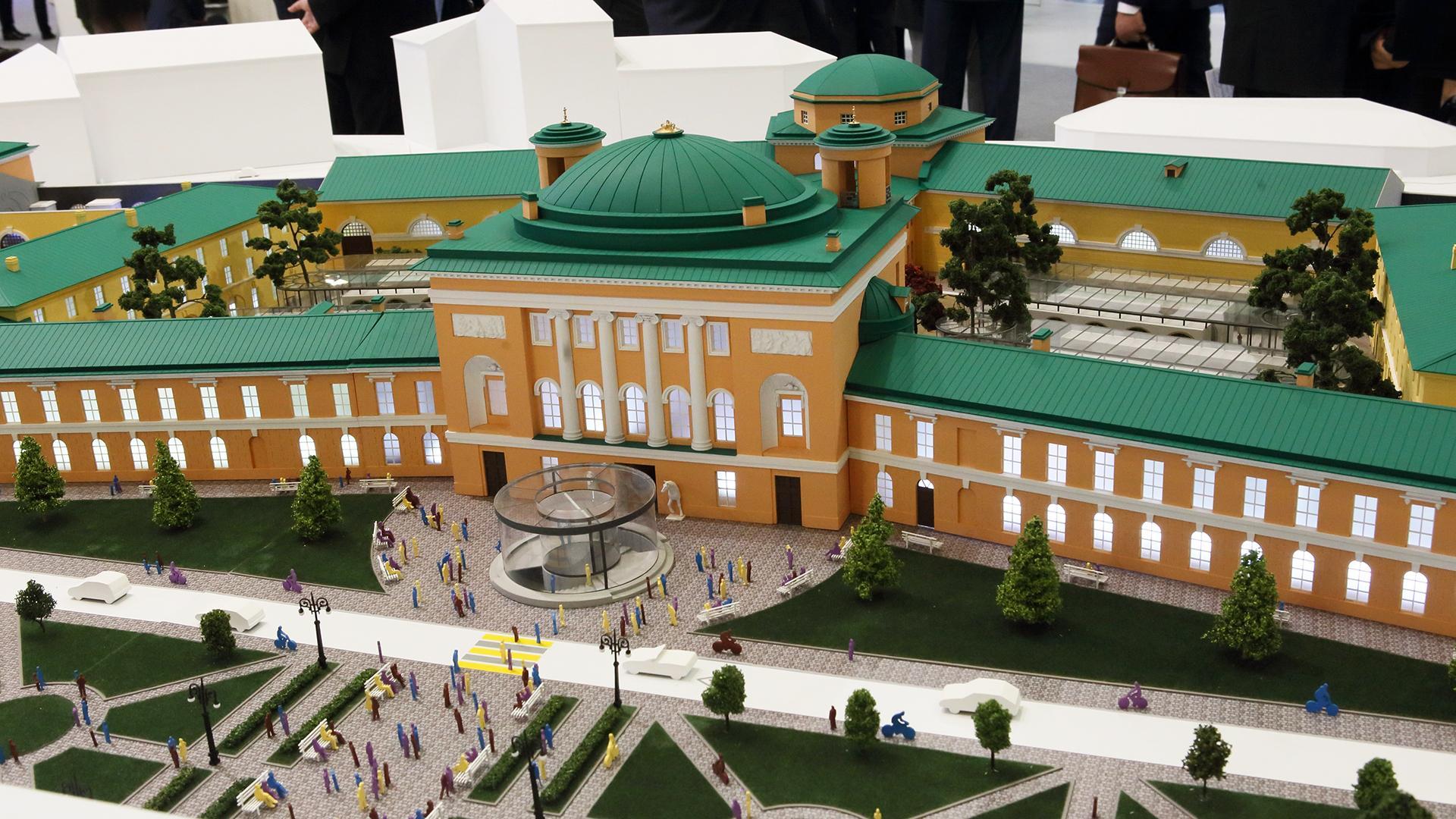 Отмечается, что внутреннее пространство Конюшенного ведомства останется единым, с лёгкими павильонами и зонами отдыха на крышах. Два боковых двора накроют атриумами, центральный — оставят открытым.