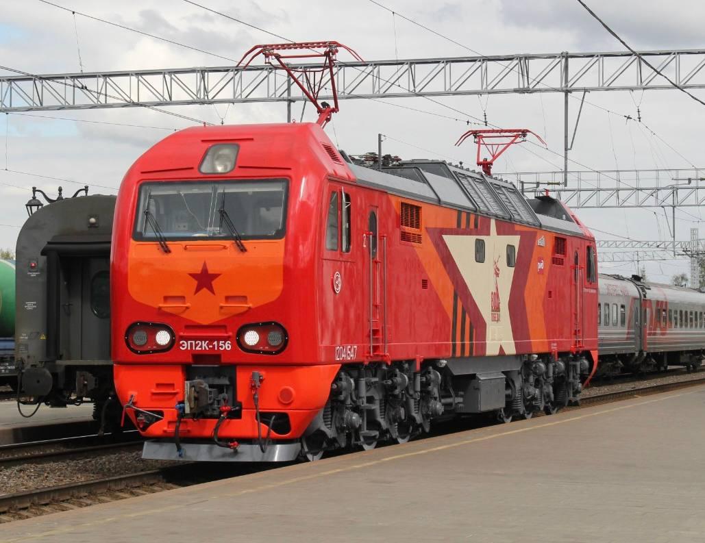 ЭП2К-156 будет работать на Октябрьской железной дороге. Он является одним из пяти электровозов, которые в честь годовщины приобрели индивидуальные ливреи «80 лет Победе».