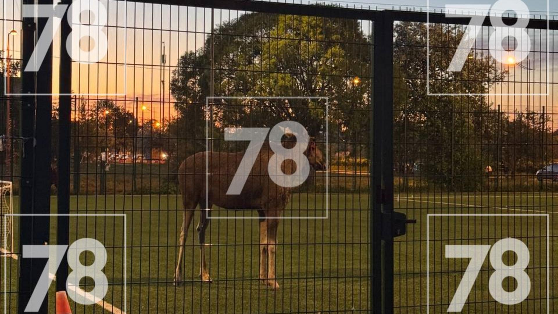 Поздним вечером во Фрунзенском районе лось оказался заперт на футбольном стадионе.