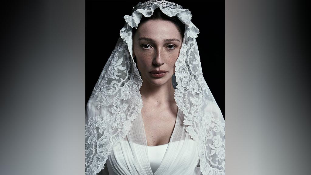 Девушка опубликовала свой портрет в свадебном платье. Для свадьбы она выбрала наряд из кружева с фатой в русском стиле.