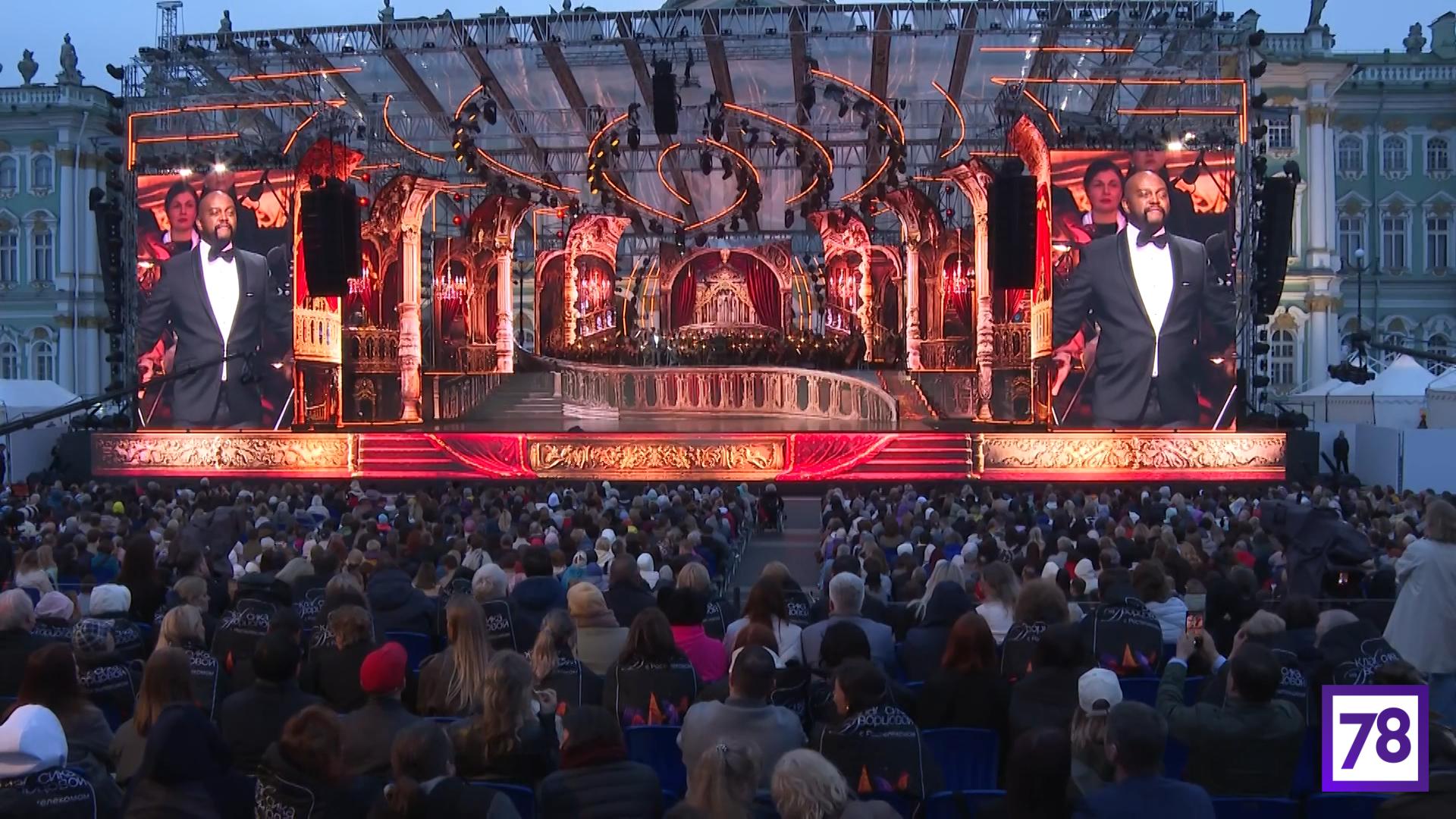 Вечером 30 мая под открытым небом состоялся гала-концерт «Классика на Дворцовой» в честь 322-летия Петербурга.