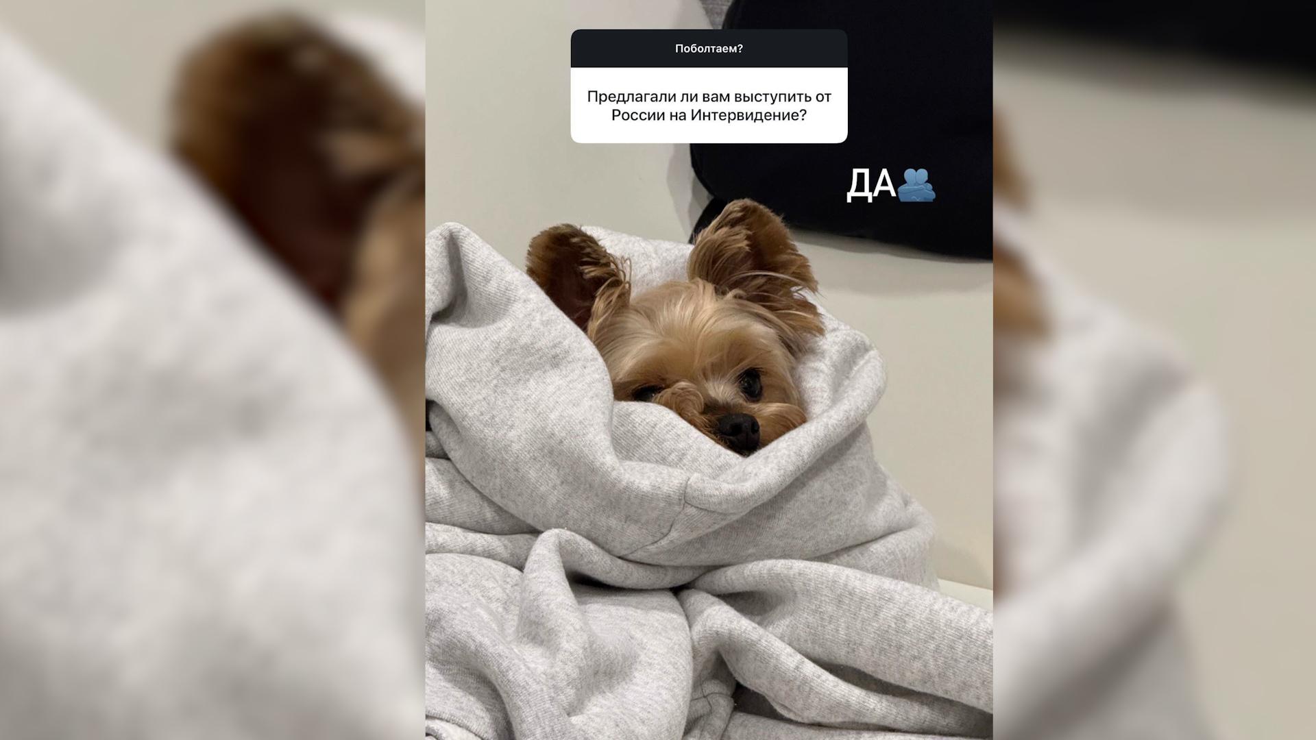 Певица ответила на вопрос о конкурсе от подписчика, сопроводив запись изображением своего питомца.