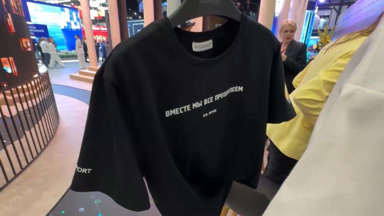 Очередь выстроилась на ПМЭФ за футболками с цитатами Путина и Лаврова