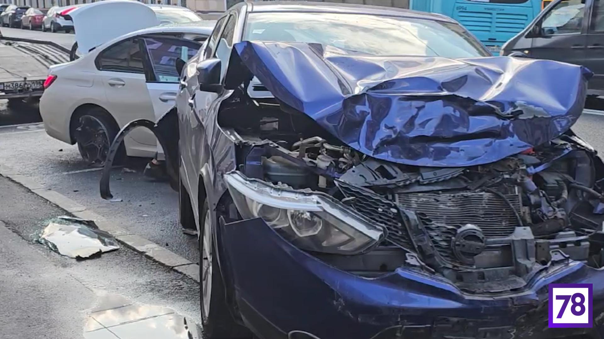 Массовая дорожная авария произошла во вторник вечером в центре Петербурга.