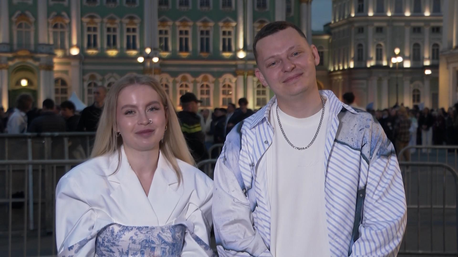 Артисты Анна и Никита Беляковы из группы «5УТРА» открыли концерт «Алых парусов» на Дворцовой площади. Музыканты остались под большим впечатлением от приёма зрителей и организации самого праздника.