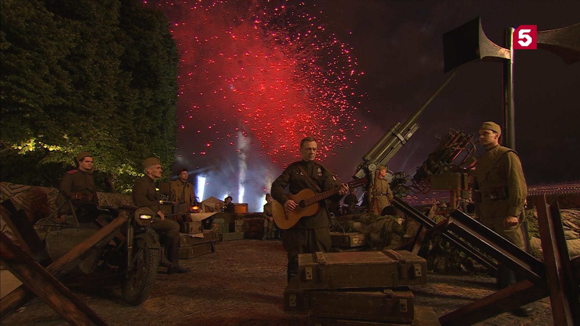 Кульминацией водно-пиротехнической части праздника выпускников «Алые паруса» стали залпы настоящих боевых «Катюш». В небе над Петербургом прогремели выстрелы сначала двухсот снарядов, а затем ещё 120-ти. Их посвятили 80-летию Великой Победы.