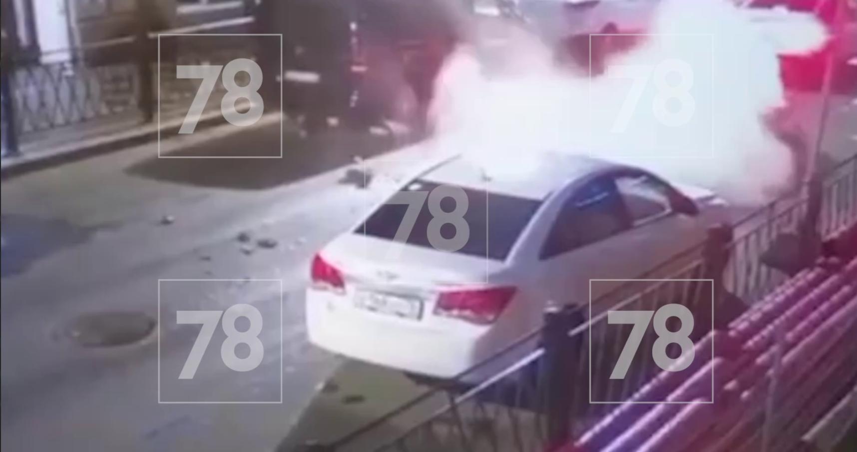 Момент столкновения мотоциклиста и Lada в Кузнечном переулке попал на видео