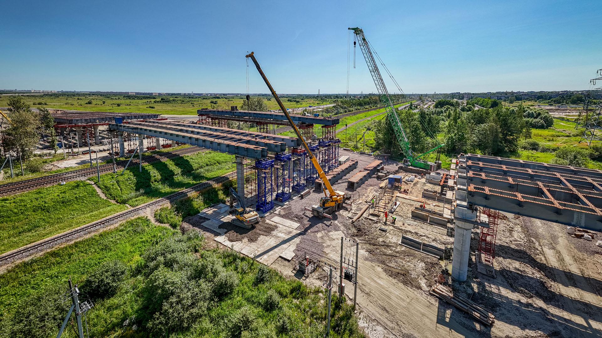 Новый путепровод через железнодорожную линию Витебского направления в составе строящейся Южной широтной магистрали в Пушкинском районе Петербурга готов на 55%.