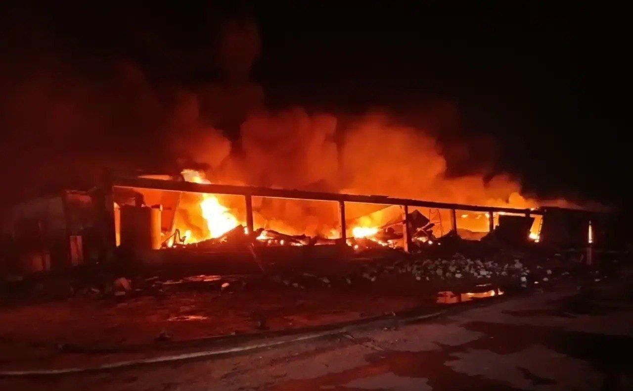Как рассказали в региональном управлении МЧС, в 2:30 пожар был локализован на площади 1200 кв. м. Произошло обрушение кровли на площади 1200 кв. м.