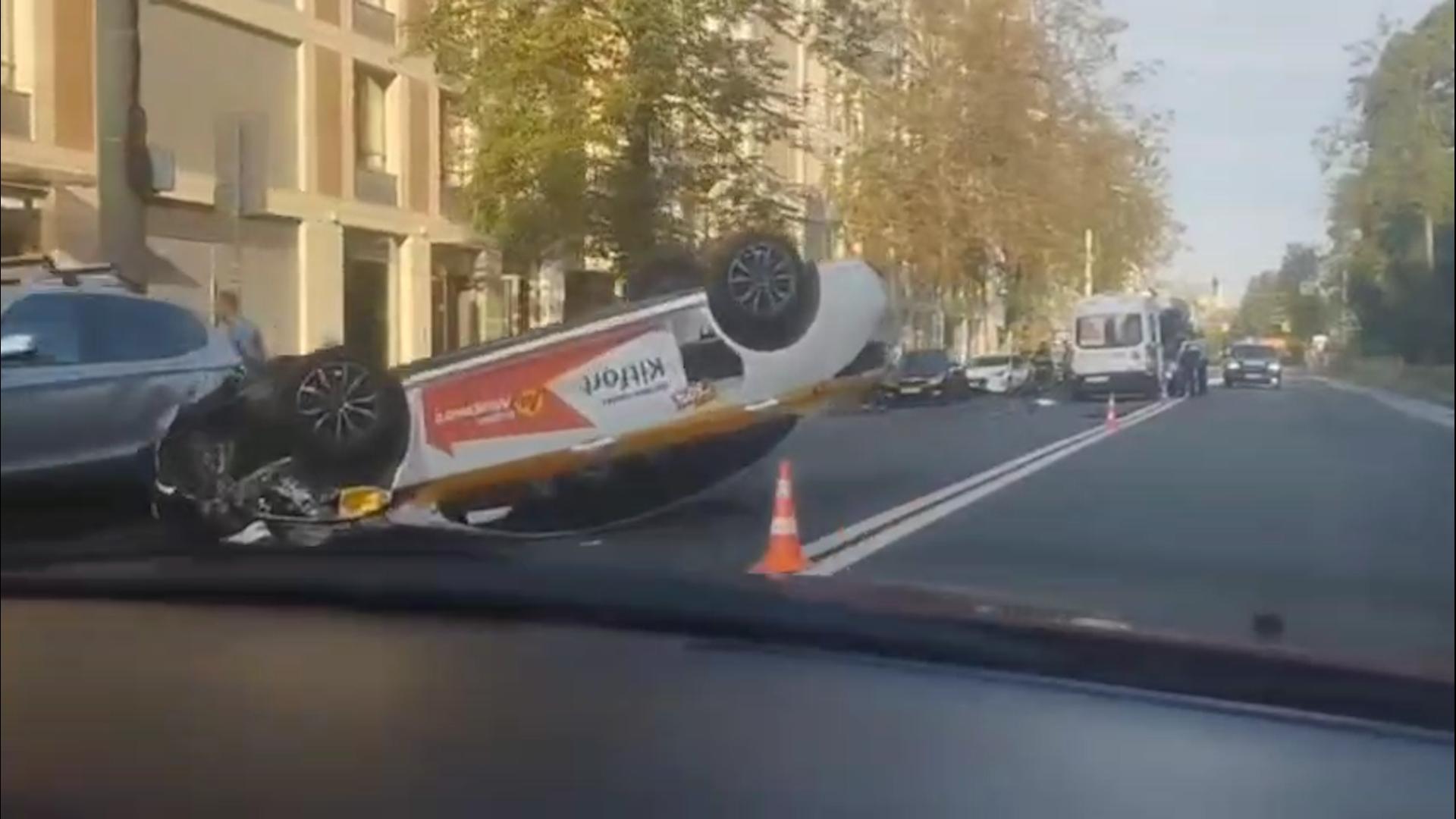 Автомобиль такси перевернулся на Петровском проспекте
