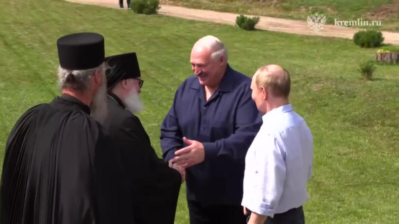 Главы государств не первый раз встречаются на острове. Путин и Лукашенко, как и в прошлые разы, посетили храм Смоленской иконы Божией Матери, где монахи молятся о погибших русских воинах.