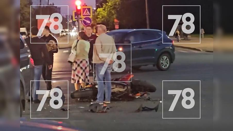Автомобиль и мотоцикл столкнулись в Невском районе Петербурга