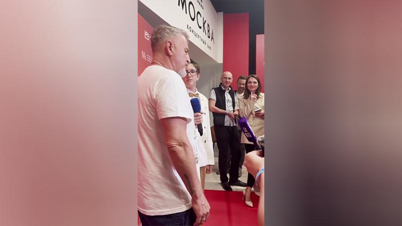 В нарезке артист резко отдёргивает мальчика и заявляет, что тот задаёт ему неправильные вопросы.
