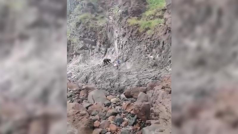 В российских соцсетях завирусилось необычное видео, снятое на Курильских островах. На острове Итуруп молодой любопытный медведь вышел прямо к группе туристов, но получил неожиданный отпор... ведром. Опытный гид не испугался хищника и отогнал его с помощью обычных камней и пластикового ведра. Пристыженный хозяин тайги поспешил ретироваться.