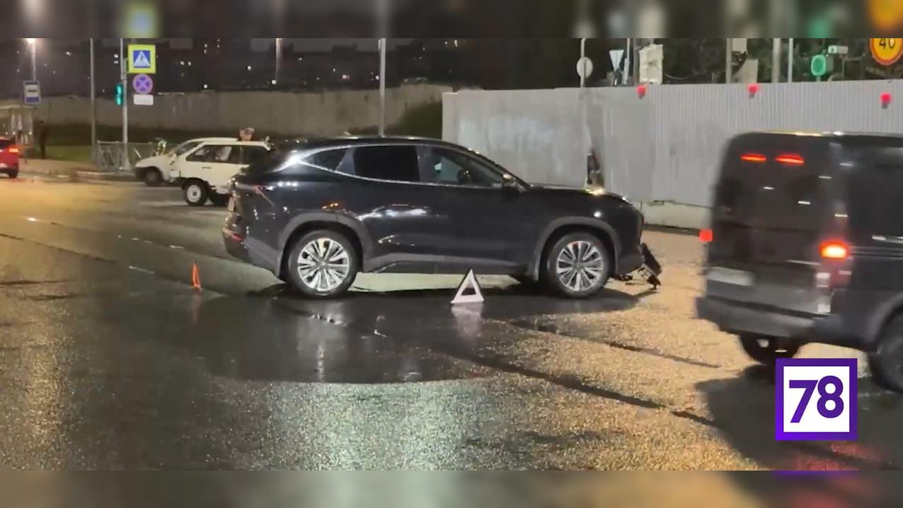 Ранее 78.ru писал, что на этом же месте столкнулись голубая Audi и белый Renault. Из-за полученного удара правая часть капота немецкого автомобиля была повреждена до двигателя.