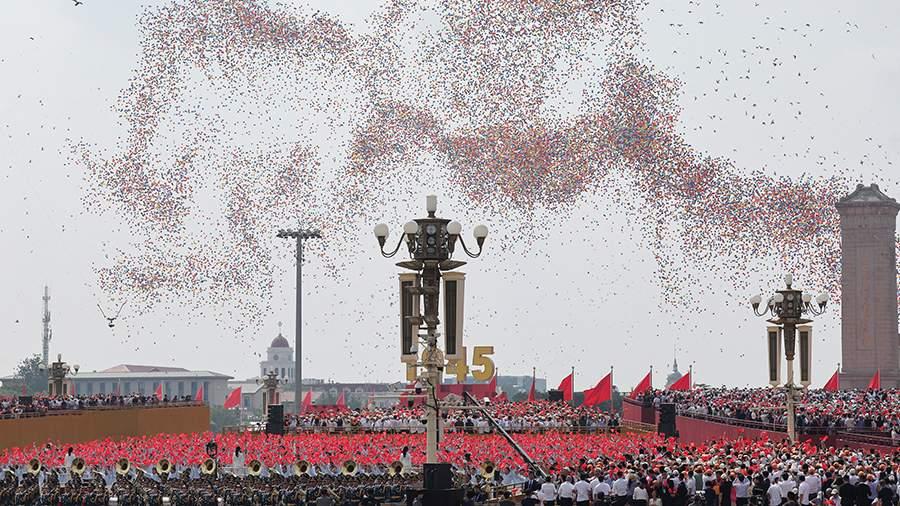 В конце военного парада в Пекине, посвящённого 80-летней годовщине победы во Второй мировой войне и капитуляции Японии, в воздух выпустили 80 тыс. «голубей мира» и тысячи воздушных шариков.