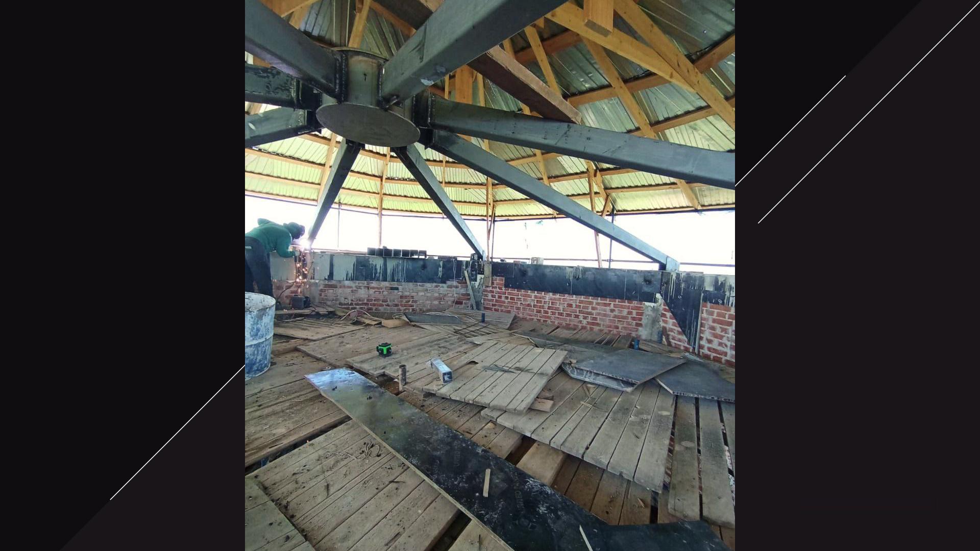 Как рассказал заместитель председателя правительства Ленинградской области Владимир Цой, на объекте начался ключевой этап реставрации. Специалисты уже приступили к монтажу кровли. Кроме того, завершены основные работы по укреплению стен и кладки, установлены перекрытия и лестницы внутри здания.