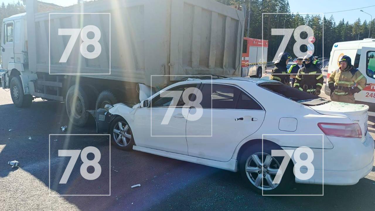 UPD: в пресс-службе ГУ МВД России по Петербургу и Ленобласти сообщили, что на 46-м км Скандинавского шоссе водитель автомобиля Toyota Camry, которому на вид 60 лет, врезался в стоящий на остановке безопасности грузовик под управлением 43-летнего водителя. В результате столкновения водитель легковушки и его пассажиры — женщина на вид 60 лет и девочка лет 6–7 скончались на месте. Полиция организовала проверку произошедшего. Личности погибших устанавливаются.