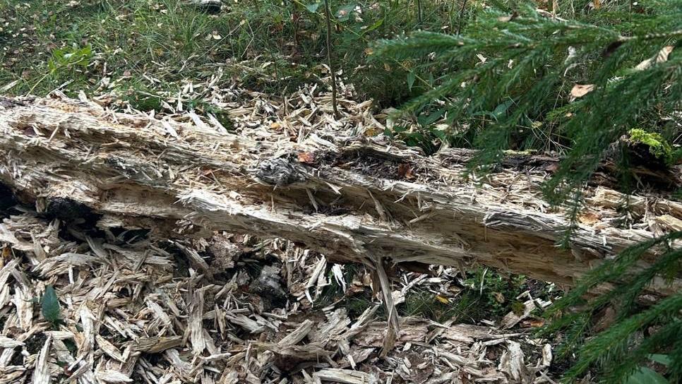 Кроме того, в лесу заметили изодранное до щепок дерево.