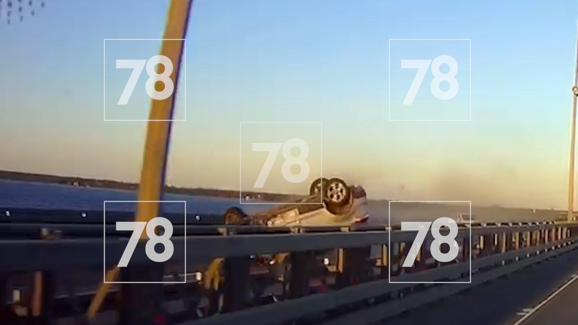 На внешней стороне петербургской дамбы произошло ДТП с перевертышем