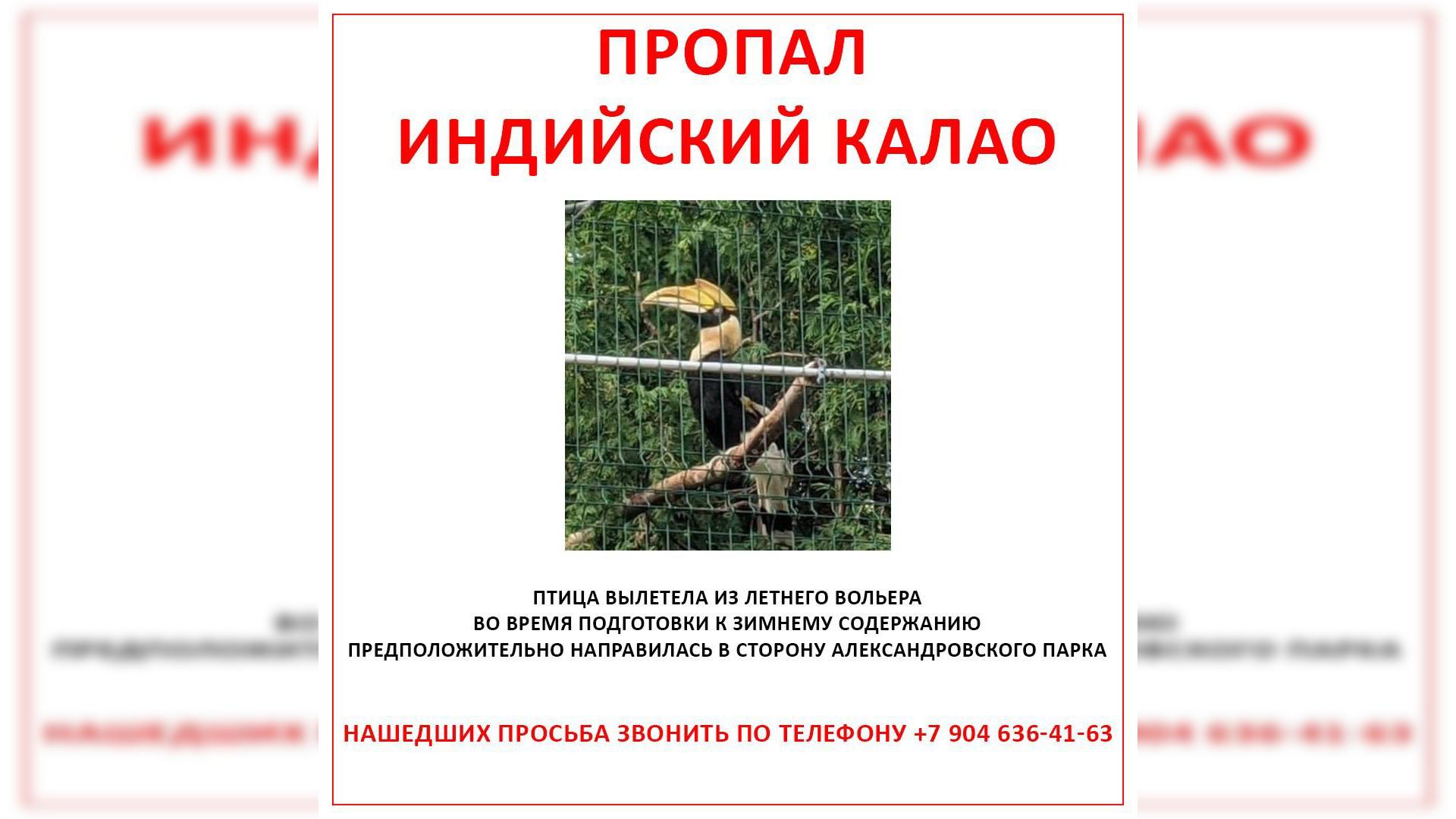 Извернулась и улетела: появились подробности дерзкого побега калао из зоопарка