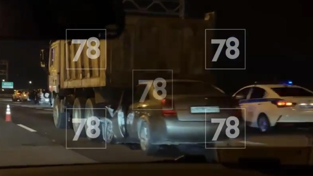 Самосвал «съел» легковушку в результате ДТП на КАД
