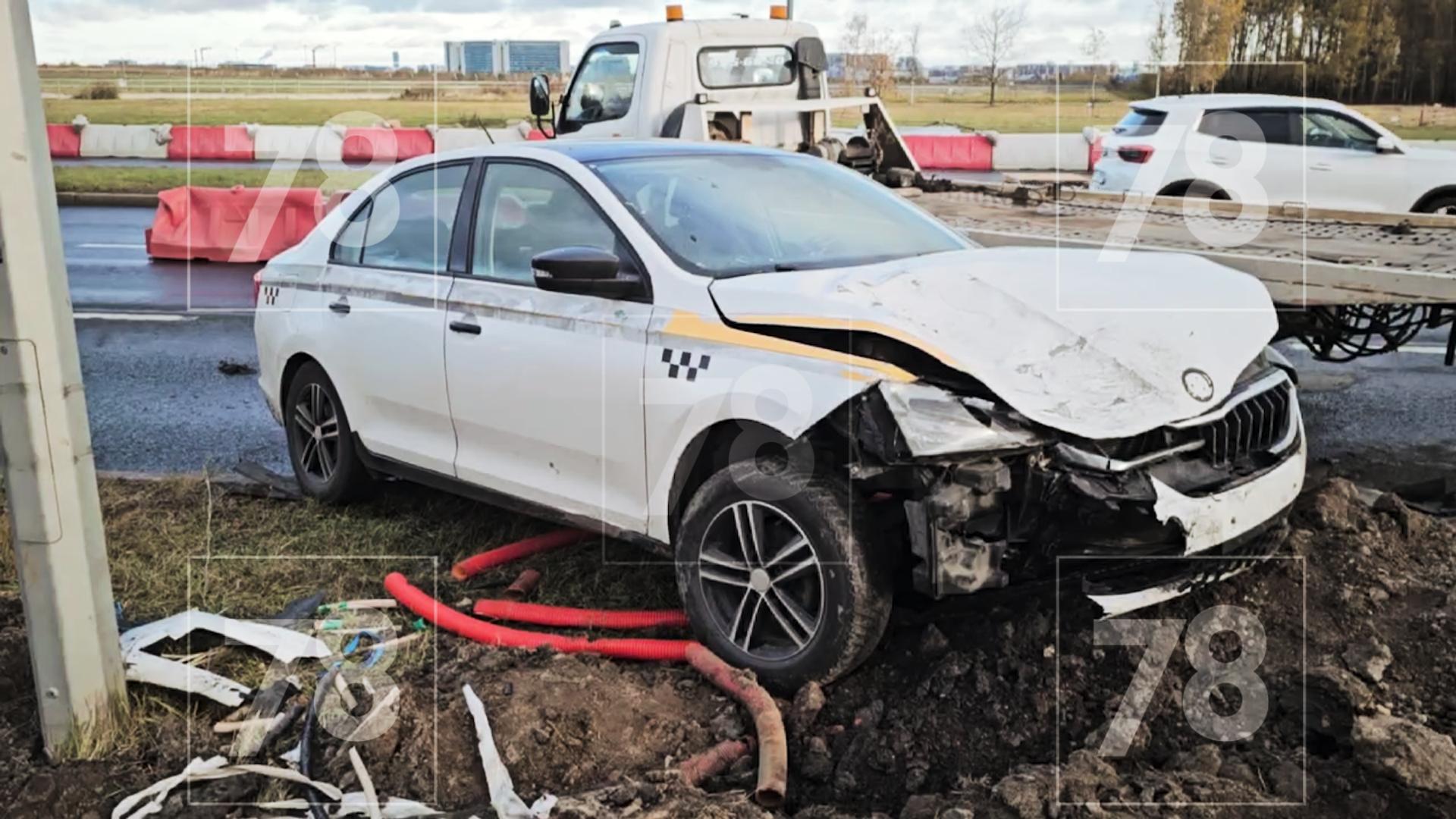 Такси влетело в машину на обочине Пулковского шоссе