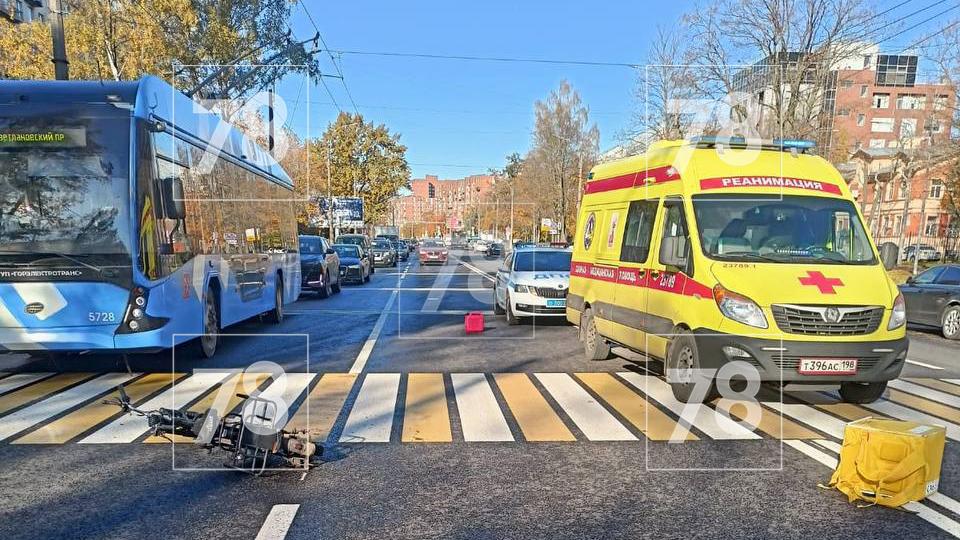 Около 12 часов дня на пешеходном переходе напротив дома № 32 по проспекту Тореза в Выборгском районе Петербурга водитель иномарки сбил девушку-доставщика. Пострадавшей около 18–20 лет. Об этом сообщил источник 78.ru.