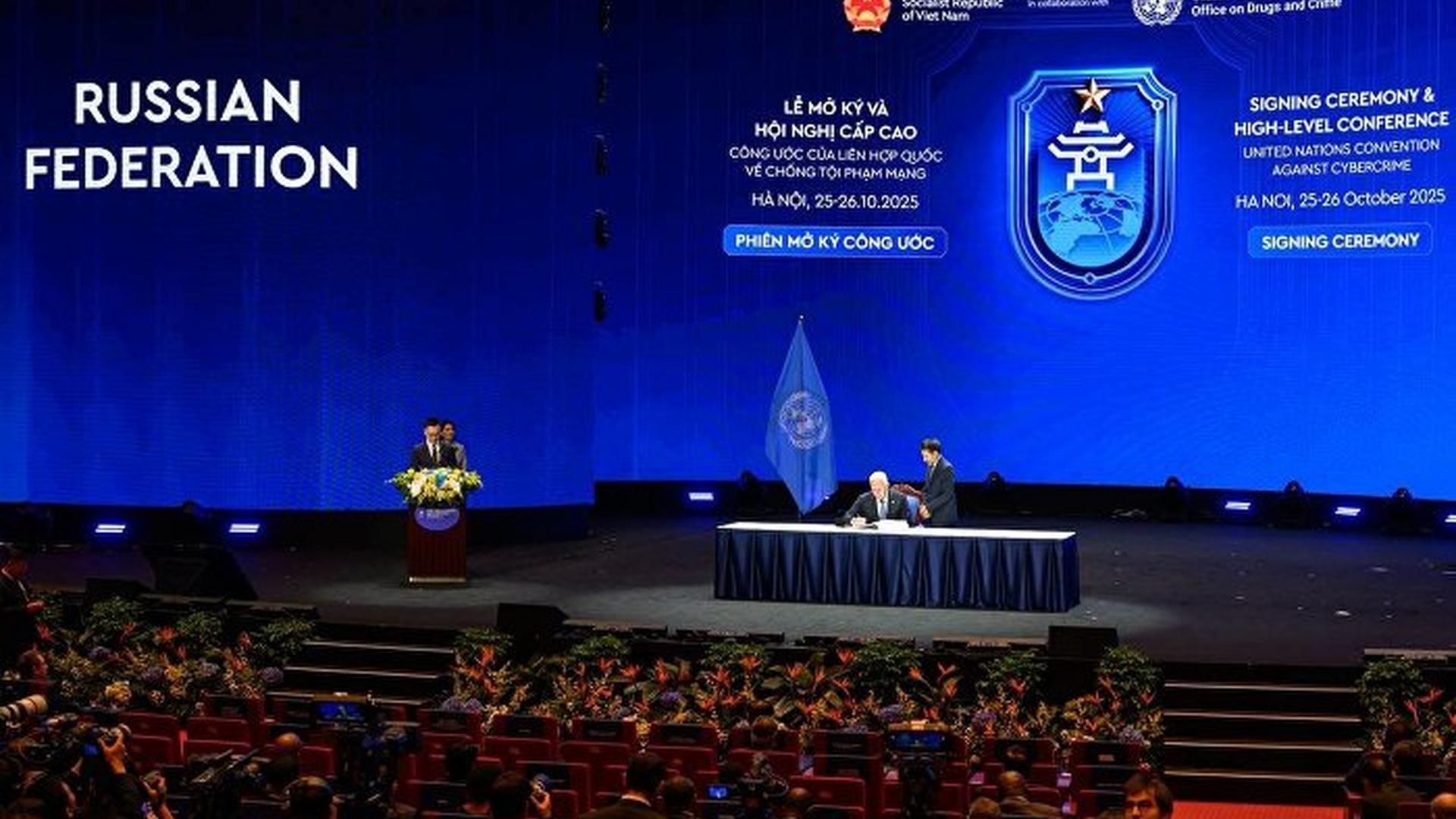 Как рассказали в УБК МВД России, церемония подписания первого юридически обязывающего международного договора, направленного на укрепление сотрудничества государств в сфере противодействия использованию информационно-коммуникационных технологий в преступных целях, проходит в Ханое.