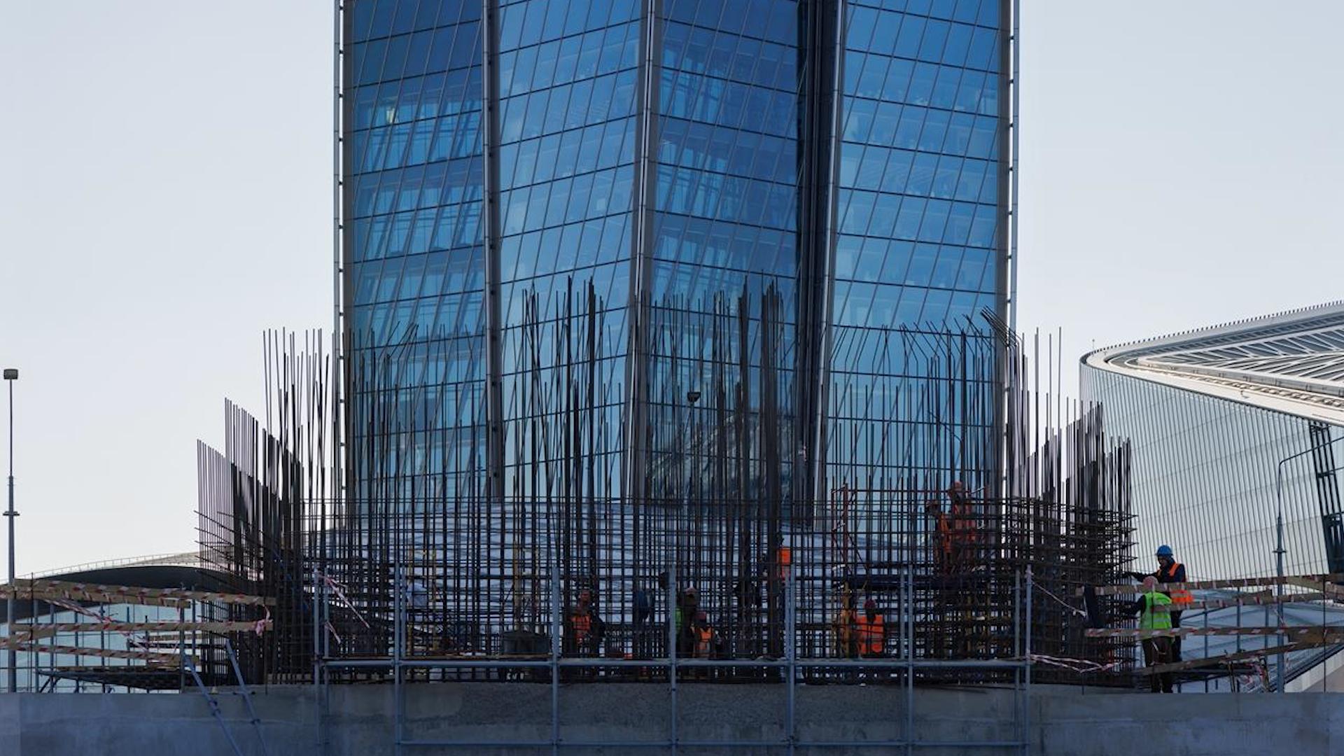 «Лахта Центр» показал кадры с возводимым Триумфальным столпом в честь победы России в Северной войне. Фотографии со стройки и видео проекта опубликовали в Telegram-канале небоскрёба.