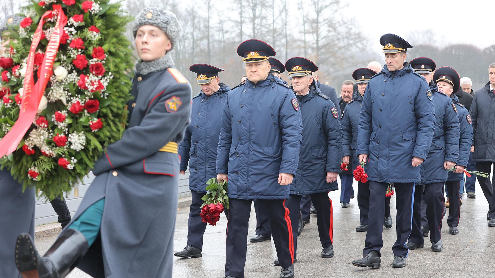 Накануне дня памяти погибших при выполнении служебных обязанностей на Пискарёвском мемориальном кладбище Петербурга прошла торжественно-траурная церемония возложения цветов и венков к подножию центрального монумента мемориала «Матери-Родины».