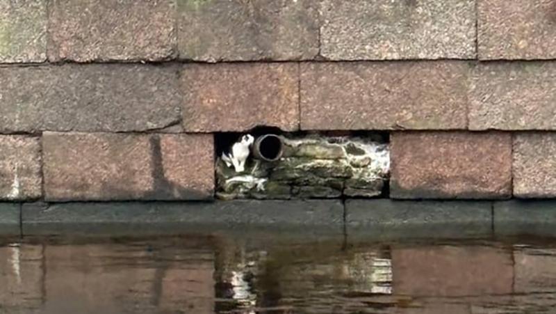 На набережной канала Грибоедова в Петербурге кот застрял на дренажной трубе. Его уже несколько дней пытаются спасти. Об этом рассказали в сообществе «Кошкиспас».